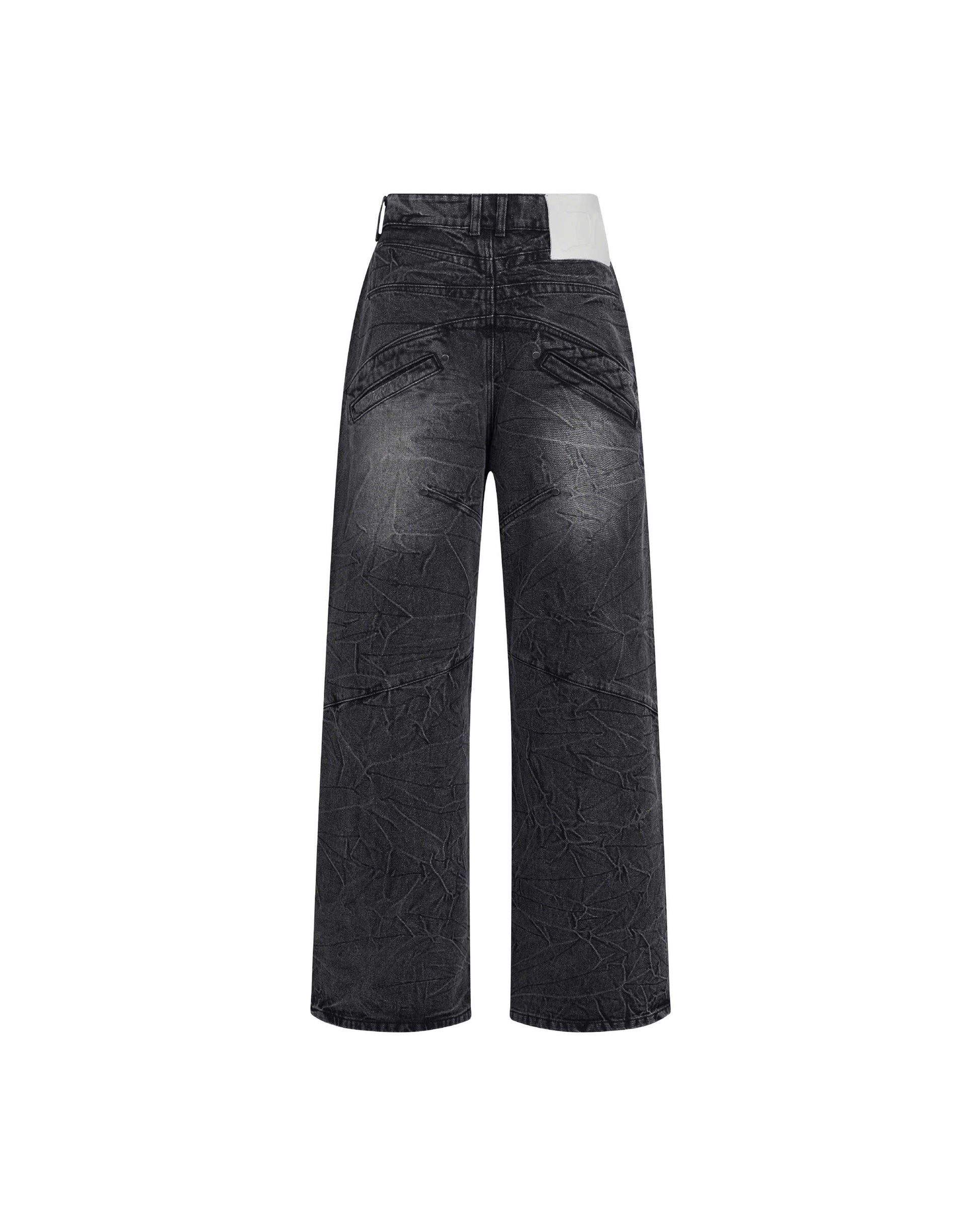 Details: 13.5OZ Denim textiles / Stone washed material treatment / Baggy silhouette / Deconstructed / Buttons fly / Multiple rivets / Metalwork hardwares